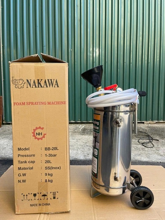 – Bình Phun Bọt Tuyết 20L Inox 201 Nakawa BB-20L là thiết bị không thể thiếu trong các tiệm rửa xe máy – ô tô, garage chăm sóc xe và đơn vị vệ sinh công nghiệp. Sản phẩm được sản xuất từ Inox 201 cao cấp, dung tích lớn 20 lít, cho khả năng tạo bọt dày, mịn, bám lâu giúp làm sạch xe hiệu quả, tiết kiệm dung dịch và công sức.