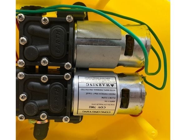 - Linh hoạt: Cho phép người dùng tùy chọn chỉ chạy 1 bơm (để tiết kiệm pin) hoặc cả 2 bơm (để đạt công suất phun tối đa).