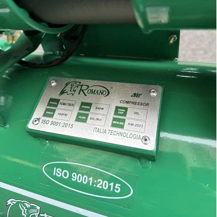 Máy Nén Khí Không Dầu Romano 840W 30L RM850/30 là dòng máy nén khí mini không dầu, thiết kế nhỏ gọn, vận hành êm ái và cho nguồn khí sạch 100%. Với công suất 840W cùng bình chứa 30L, sản phẩm đáp ứng tốt nhu cầu sử dụng trong gia đình, tiệm sửa chữa nhỏ và các công việc cần khí nén sạch như nha khoa, phun sơn mini, thổi bụi linh kiện.